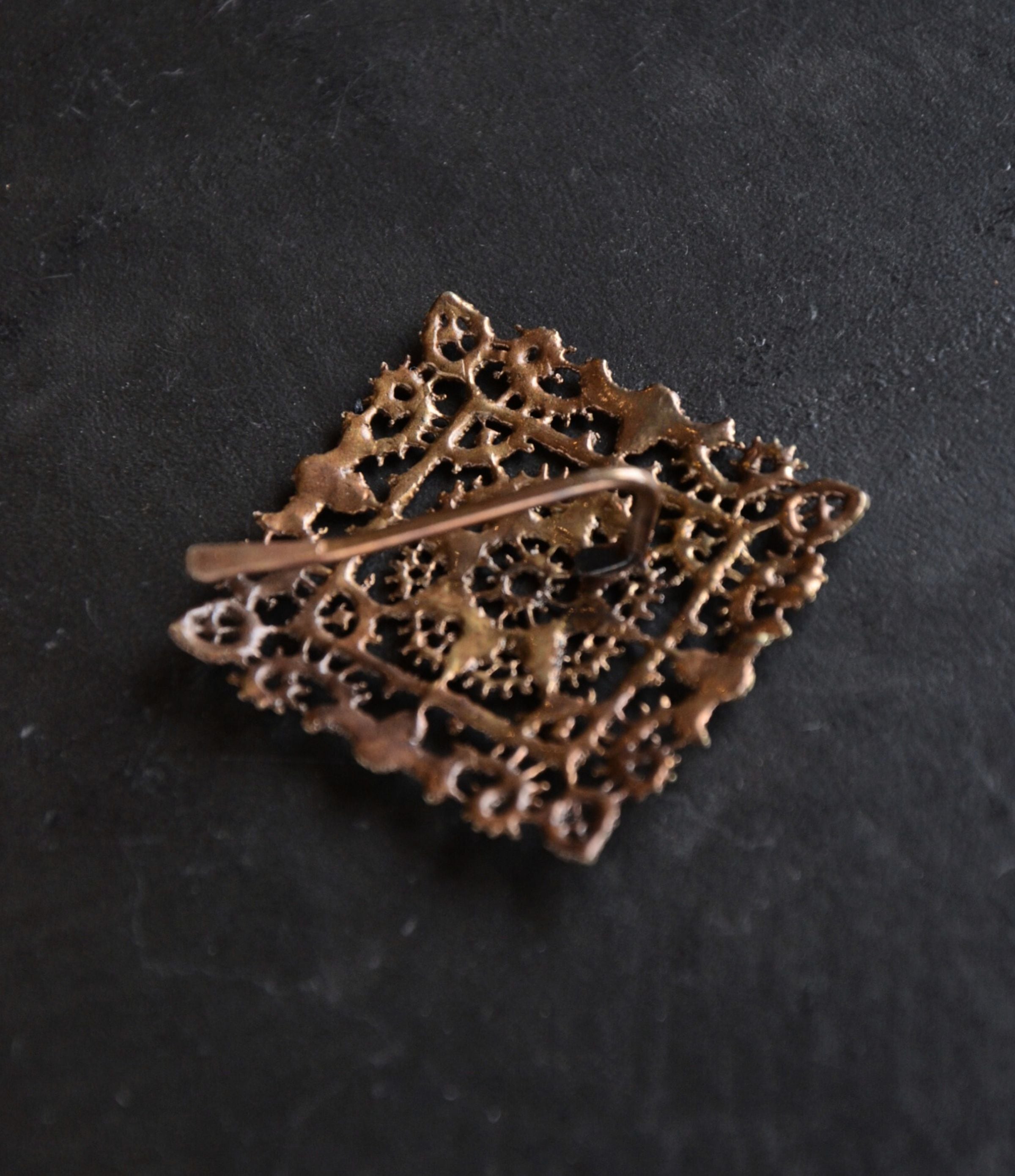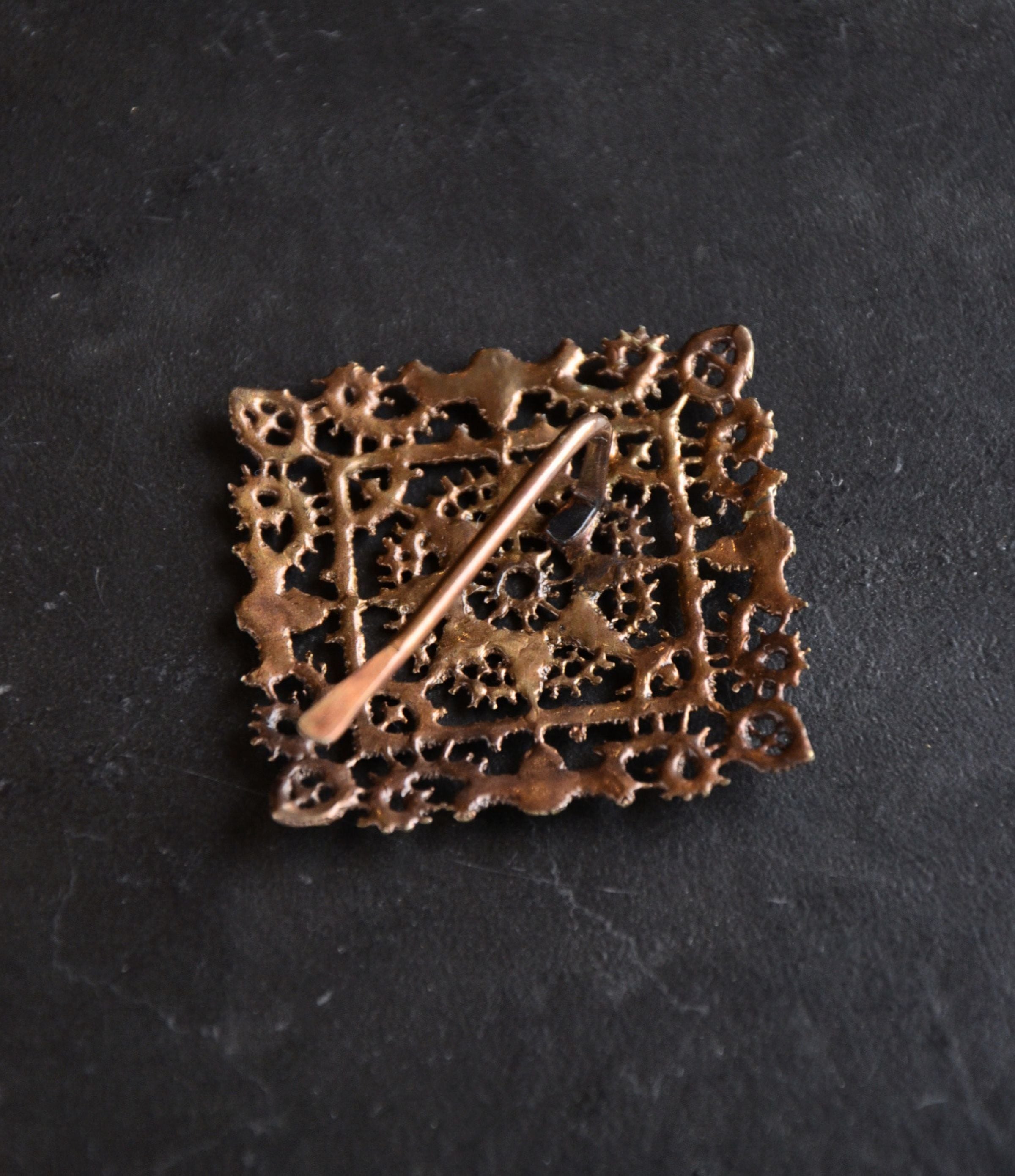 オリジナルの真鍮のパーツは一度黒く燻してから磨きをかけ、アンティーク風で落ち着いた印象になるよう仕上げています。真鍮パーツには酸化による変色を防ぐためクリアコーティングを施してあります。