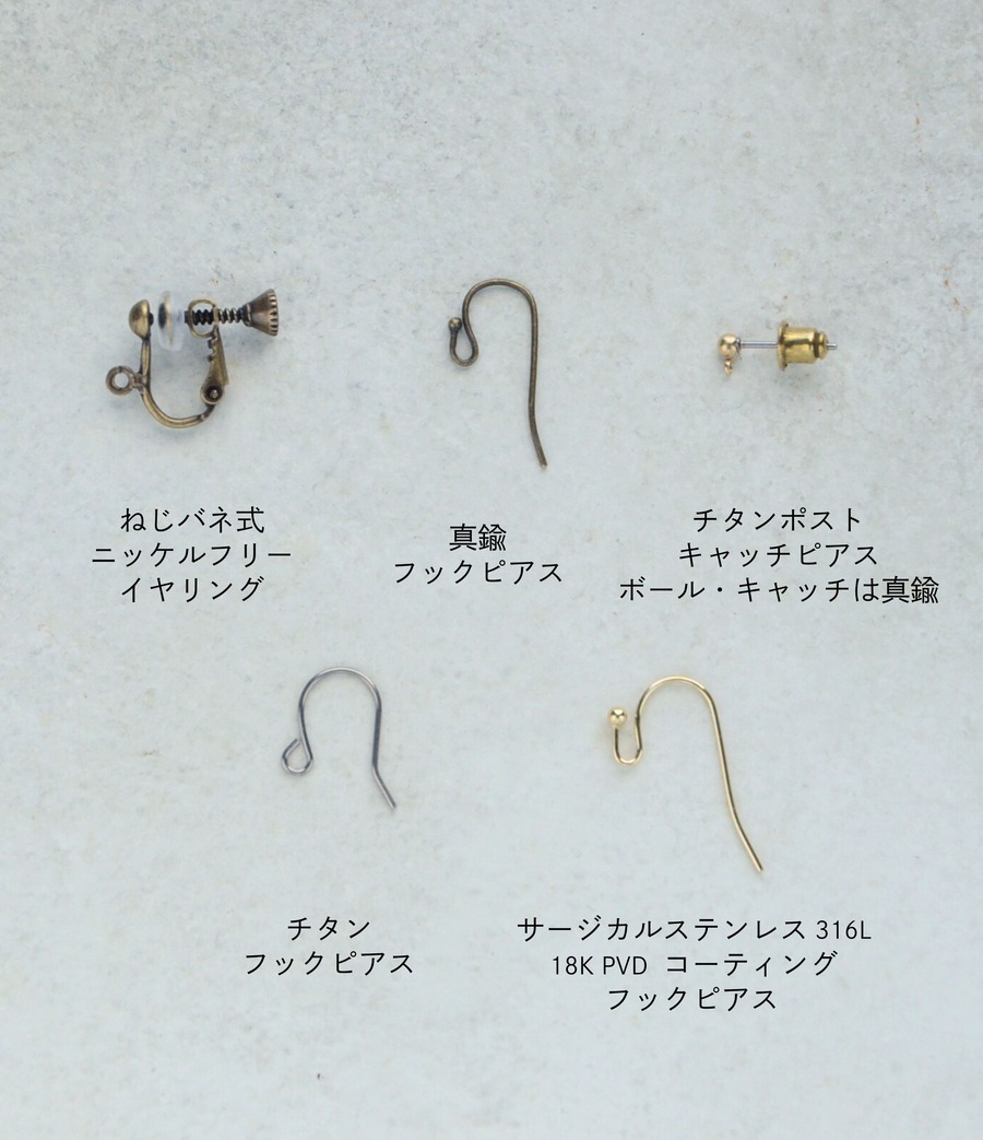 オプションからご選択ください。オプション指定がない場合はチタンポストキャッチピアスでお届けします。